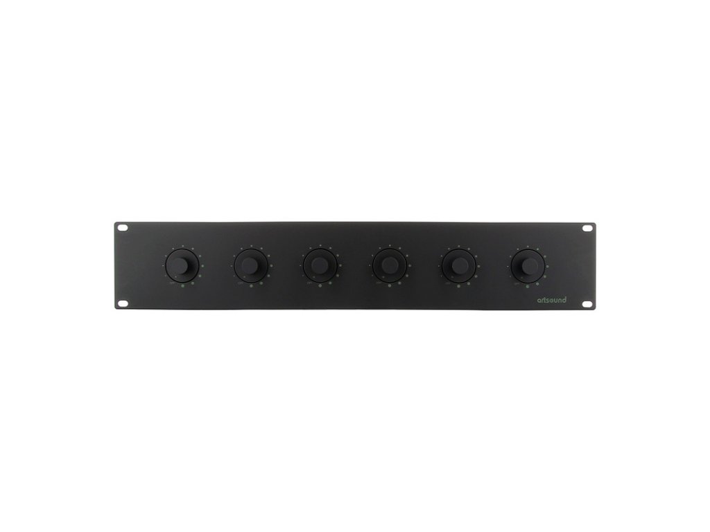 Regulátor hlasitosti s výkonom 6x 100 W pre 6 reproduktorových zón. Navrhnutý pre 100 V rozvod. Napájanie 24 V DC. Rozmery 88 x 483 x 86 mm, hmotnosť 1,86 kg, predný panel má čierne vyhotovenie. Možnosť inštalácie do 19" racku (2U).