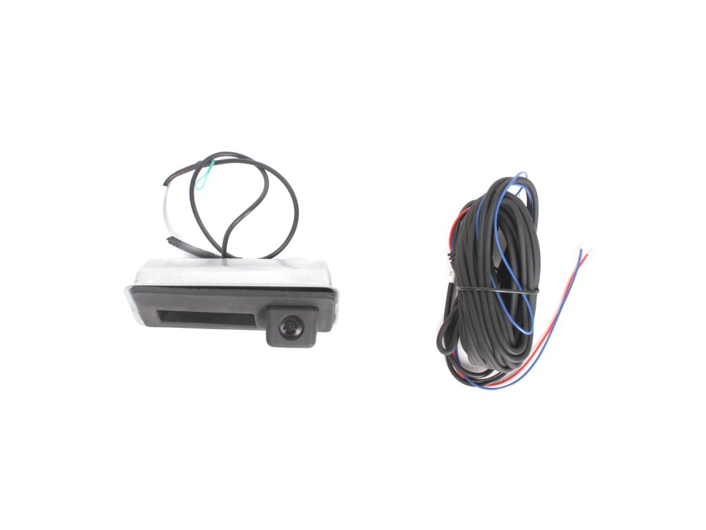 OEM parkovacia kamera pre Audi, Škoda, VW (15-) pre inštaláciu na miesto kľučky otvárania 5-tych dverí. Kamera obsahuje spínač a konektor na pripojenie oem kabeláže otvárania dverí.