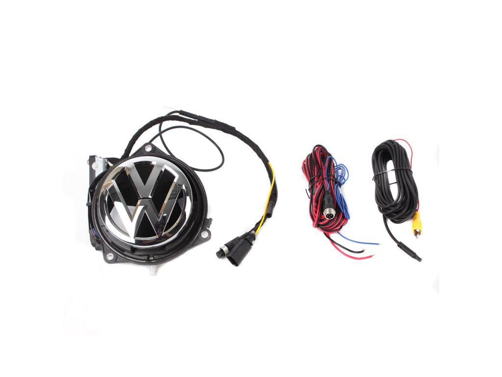 OEM farebná parkovacia kamera integrovaná do "VW" loga umiestnenom na 5-tych dverách. Po zaradení spiatočky sa kamera automaticky vyklopí, pôvodná funkcia otvárania dverí logom je zachovaná. Pre vozidlá VW Passat B8, Arteon.