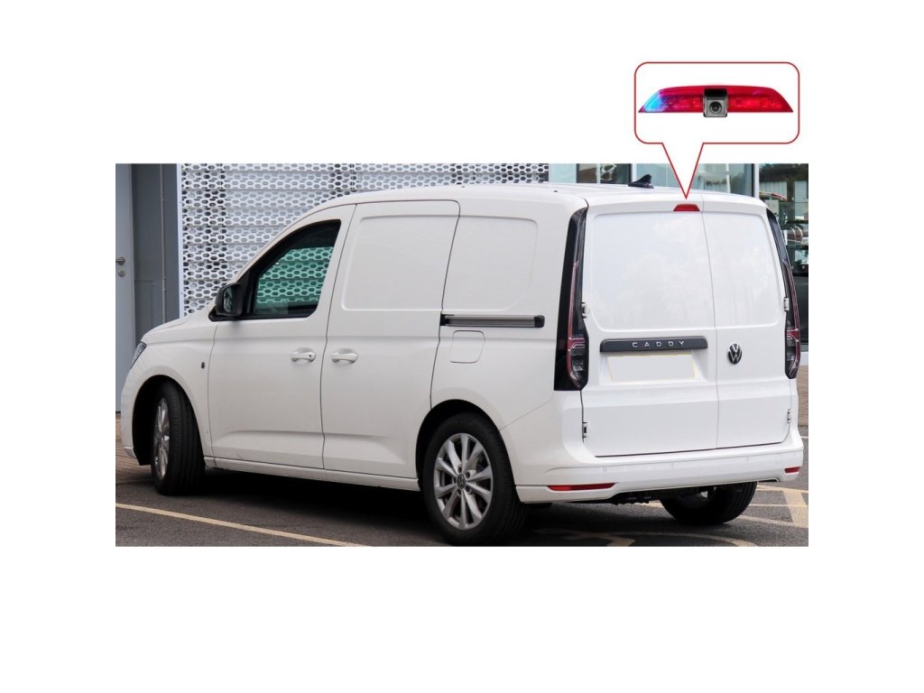 Parkovacia kamera integrovaná v centrálnom brzdovom svetle inštalovanom nad zadnými dverami pre dodávkové vozidlá VW Caddy (20-).