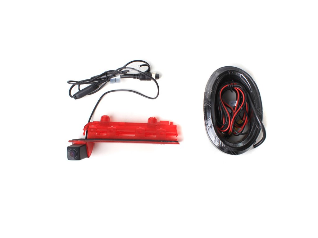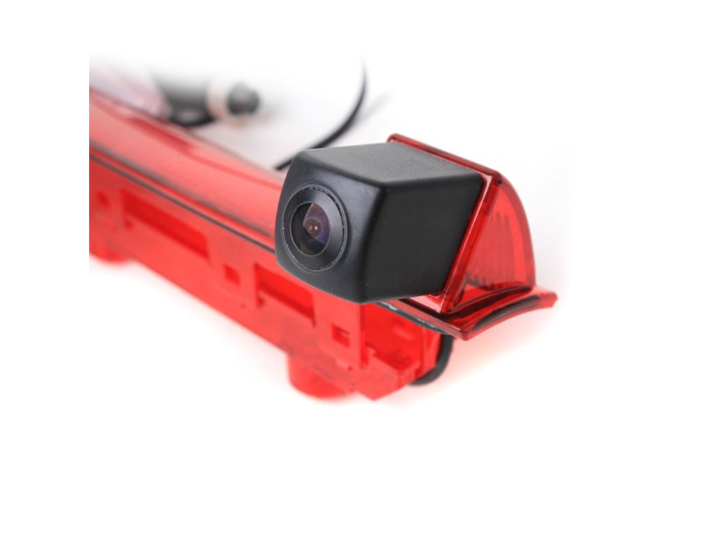Parkovacia kamera integrovaná v centrálnom brzdovom svetle inštalovanom nad zadnými krídlovými dverami pre dodávkové vozidlá VW Transporter T5 / T6. Kamera je homologovaná.