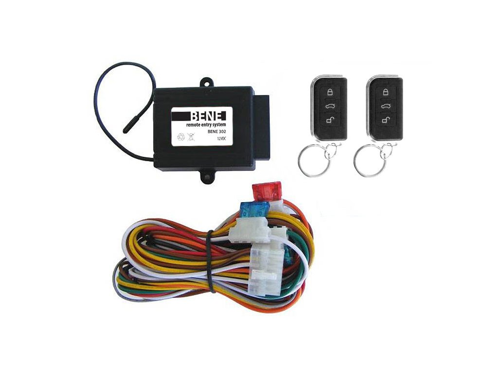 BENE 302 je univerzálny modul diaľkového ovládania centrálneho zamykania. Modul dokáže ovládať akékoľvek existujúce centrálne zamykanie, ovládané mechanicky - kľúčom. K modulu sa dodávajú 2 ks diaľkových ovládačov, ktoré komunikujú s riadiacou jednotkou plávajúcim kódom. Do modulu je možné naprogramovať celkovo až 6 diaľkových ovládačov.