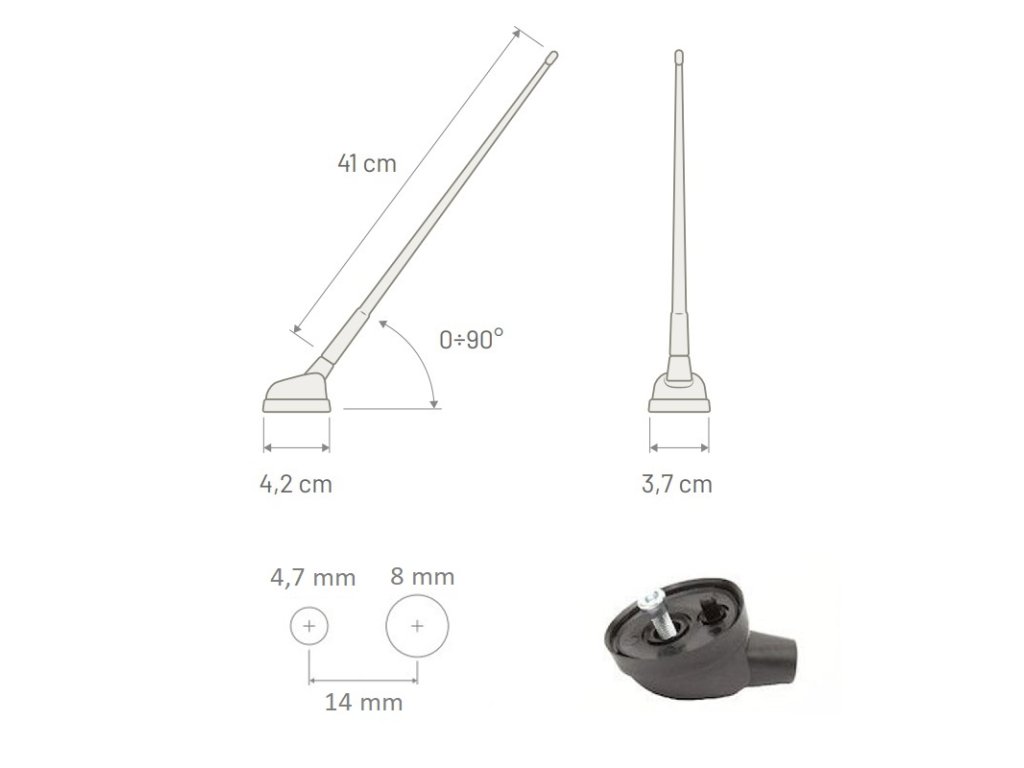 Anténa strešná, univerzálna, predná, 41cm, DIN