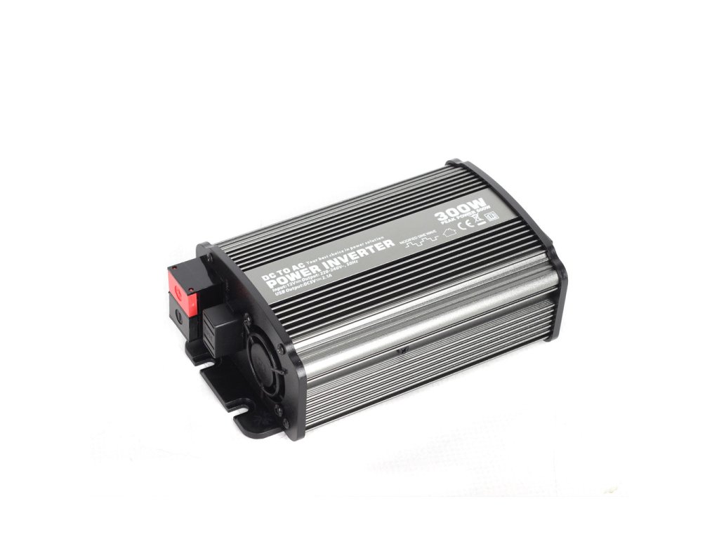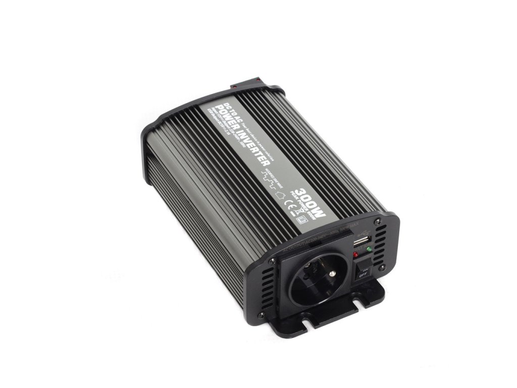 Menič s výkonom 300W vhodný pre vozidlá s palubnou sieťou 12V (dodávky a osobné vozidlá), pre napájanie malých elektrospotrebičov 230V. Výstupný prúd má podobu modifikovanej sínusoidy (obdĺžnikový priebeh) o frekvencii 50Hz/230V, je vybavený USB výstupom pre nabíjanie USB zariadení (MP3 prehrávače,...).