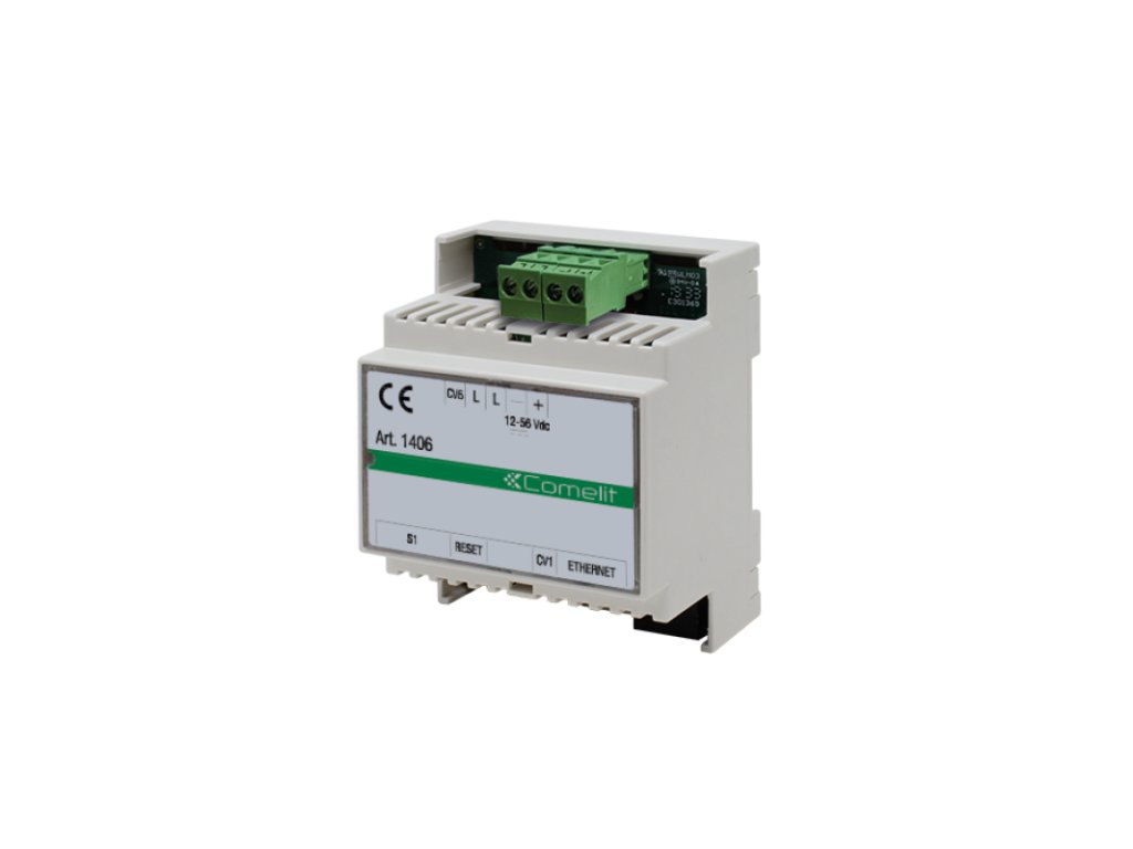 Komunikačný Gateway 1406, volanie na mobilnú APP pre 50 bytov (až do 15 mobilných zariadení na byt, potreba vnútorných jednotiek), pripojenie na zbernicu systému a výstup TCP/IP (DHCP), možnosť vzdialenej správy cez My Comelit web, napájanie zdrojom 1595, pre systém SB2