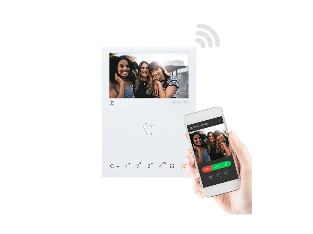 Videomonitor Mini 6741W, handsfree, pre SB1 a SB2 2vodičový zmiešaný audio/video systém, Wi-Fi pripojenie, zabudovaná Slave gateway pre volanie na mobil prostredníctvom mobilnej dátovej siete, 4,3" širokouhlý farebný display 16:9, 1x dotykové tlačidlo pre ovládanie zámku, 2x programovateľné tlačidlo, nastavenie hlasitosti a obrazu, rôzne vyzváňacie melódie, indikačné LED, kontakt prídavného zvonenia od dverí bytu, OSD menu, programovanie DIP, napájanie zo zbernice, biely, montáž na omietku (bez potreby doplnkového inšt. rámika), videomonitor má možnosť volania až na štyri telefónne čísla, rozmery 115 x 160 x 22 mm