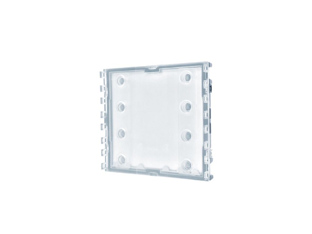 Modul tlačidlový UT9200, pre modulárny systém ULTRA, modul neobsahuje volacie tlačidlá, možnosť osadiť 4 kusy UT9211 pre 4 volacie adresy, alebo 4 kusy UT9212 pre 8 adries, automatické podsvietenie ovládané hlavným komunikátorom, konfigurácia modulu DIP switchmi na zadnej strane, 1 modulová pozícia