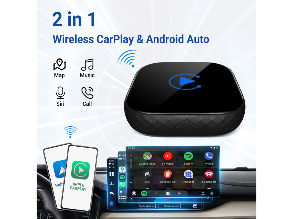 - prevádza OEM CarPlay / Android auto po kábli na bezdrôtové
