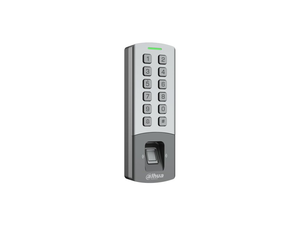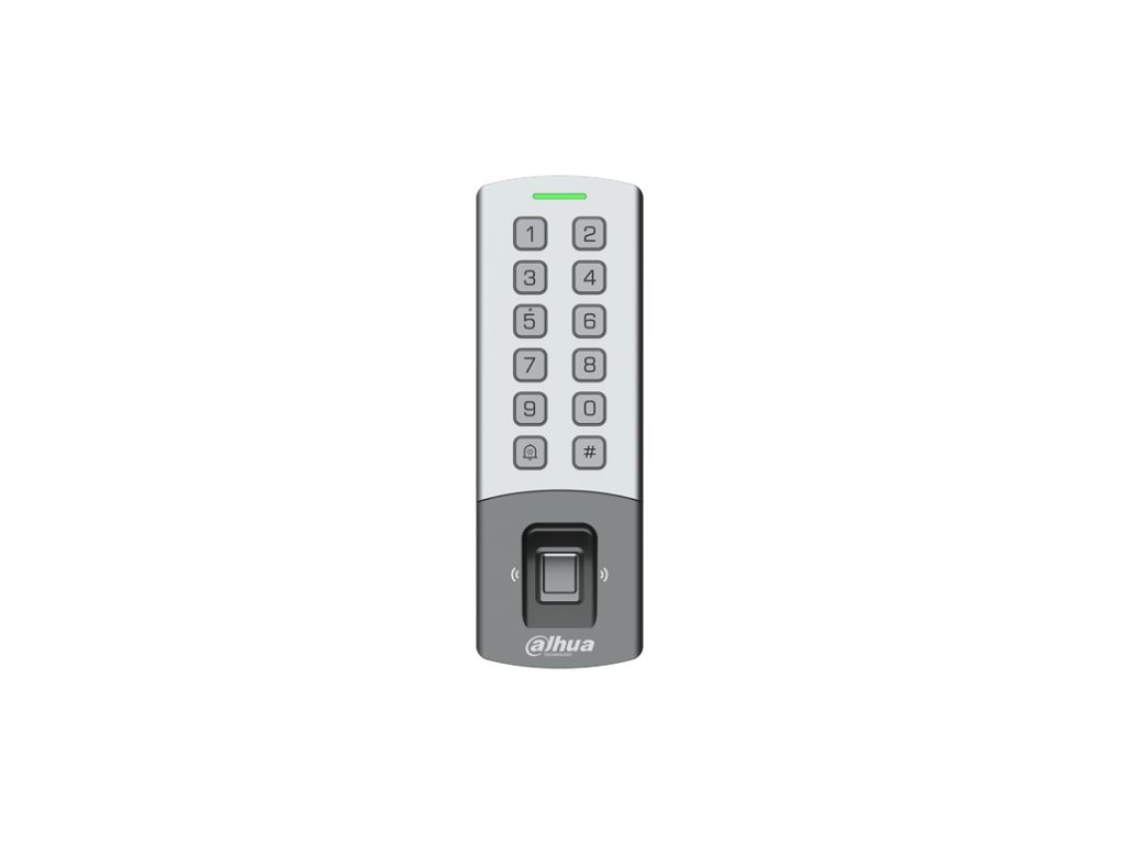 Autonómna prístupová čítačka RFID s kódovou klávesnicou a snímačom odtlačku prsta, čítanie bezkontaktných kariet MIFARE a DESfire EV3, 13,56 MHz, kapacita 10.000 užívateľov, 10.000 kariet, 3.000 odtlačkov, 100.000 záznamov, pripojiteľná podružná Dahua RFID čítačka z opačnej strany dverí (funkcia Anti-pass back), 1x NO/NC ovládanie zámku, pripojiteľnosť odchodového tlačidla a dverného senzora, tamper, možnosť pripojenia TCP/IP a manažmentu cez prístupový softvér SmartPSS Lite alebo webové rozhranie, podpora P2P komunikácie, zvuková a LED signalizácia, napájanie Standard PoE alebo 12 V DC / 1.5 A (zdroj nie je súčasťou), krytie IP 65 / IK 08, plast / zinková zliatina, montáž na omietku, rozmery 169,0 x 57,5 x 33,3 mm, Webové rozhranie prístupovej čítačky je len v anglickom jazyku. 1x 12V / 500mA výstup pre napájanie zámku.