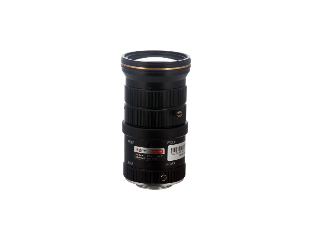 Varifokálny objektív 1/2,7" D/N s IR korekciou - automatická clona, ohnisková vzdialenosť 5,0–50,0 mm, F1.6, uhol pohľadu 65,7°–5,2°, DC Drive