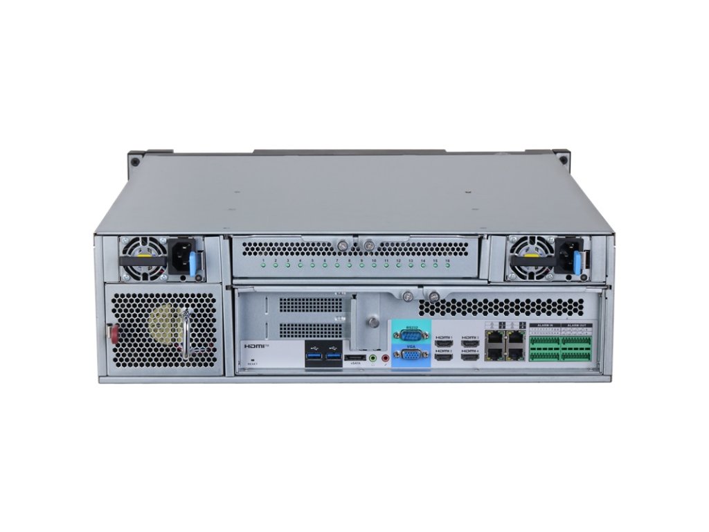 Centrálna riadiaca jednotka pre dohľadové systémy, zariadenie podporuje pripojenie: 2000 zariadení, z toho môže byť 1000 kanálov, 500 ONVIF zariadení, 100 ANPR, 32 P2P. Jeden master server umožňuje riadiť 5 slave serverov, 15x Hot-Swap HDD max. 16 TB; RAM: 16 GB, system disk Seagate Enterprise 4TB, Intel i5-12400 64 bits 6 Core; 4x RJ-45 (100/1000 Mbps), 600 Mbps vstup/výstup na server 2x USB 2.0, 2x USB 3.0, 3x HDMI, 1x VGA; napájanie: 2x 230V Redundant, maximálna spotreba 315 W, pracovná teplota od 0 °C do +40 °C, rozmery 3U 444,8 × 133,2 × 522,2 mm, hmotnosť 19,1 kg. Súčasťou zariadenia už sú licencie, zariadenie nie je možné rozšíriť o dodatočné licencie. Presný počet a druh podporovaných licencií nájdete v Datasheete alebo v Porovnávaní DSS verzii.