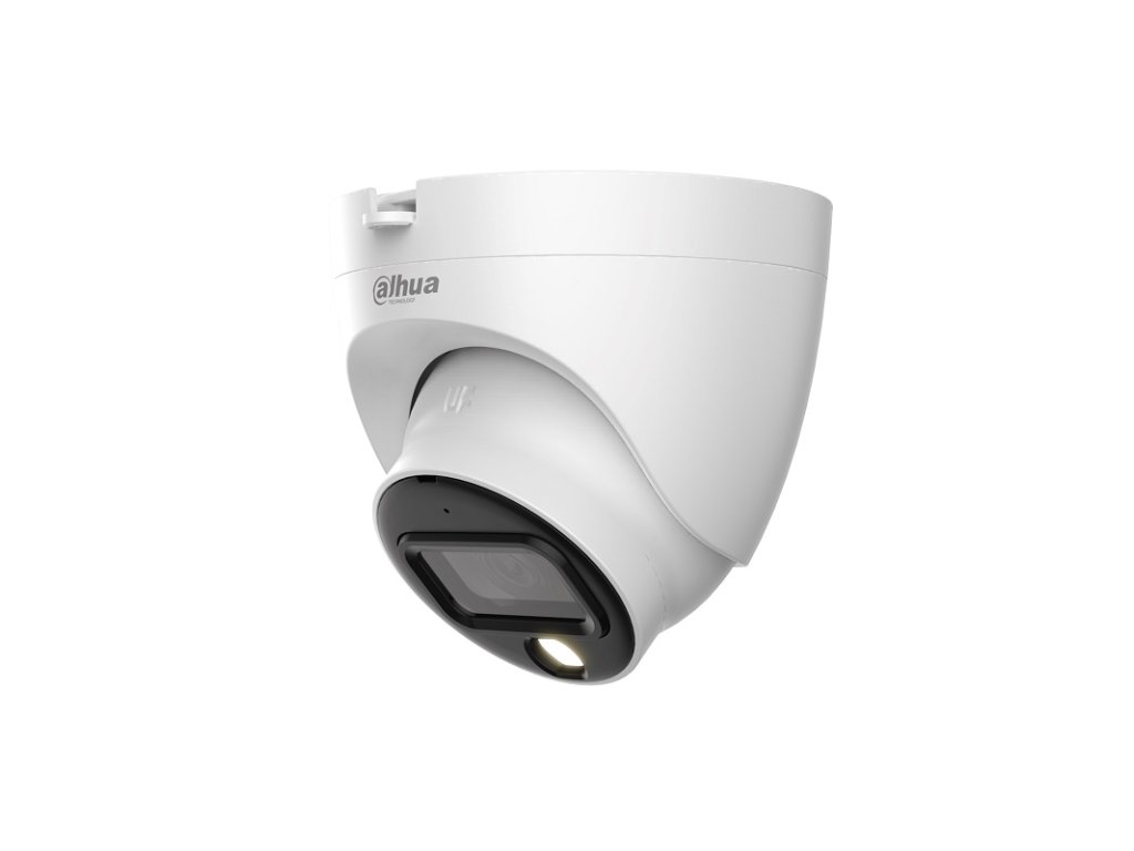 2 Mpx Full-color Starlight HDCVI dome kamera, exteriérová, biely LED prísvit do 20 m, 1/2,8" progressive CMOS, rozlíšenie 1920 × 1080 px (16:9) @ 30 fps, citlivosť 0,001 lx / F1.6, 0 lx zapnutá LED, pevný objektív 2,8 mm, uhol záberu H: 107°, V: 56°, D: 127°, horizontálne otáčanie 0°–360°, vertikálny náklon 0°–78°, AWB, WDR 130 dB, BLC, HLC, AGC, 3D NR, pracovná teplota od -40 °C do +60 °C, IP 67, napájanie 12 V DC ±30 %, spotreba max. 3,3 W, rozmery ø97,1 × 92,9 mm, hmotnosť 0,22 kg