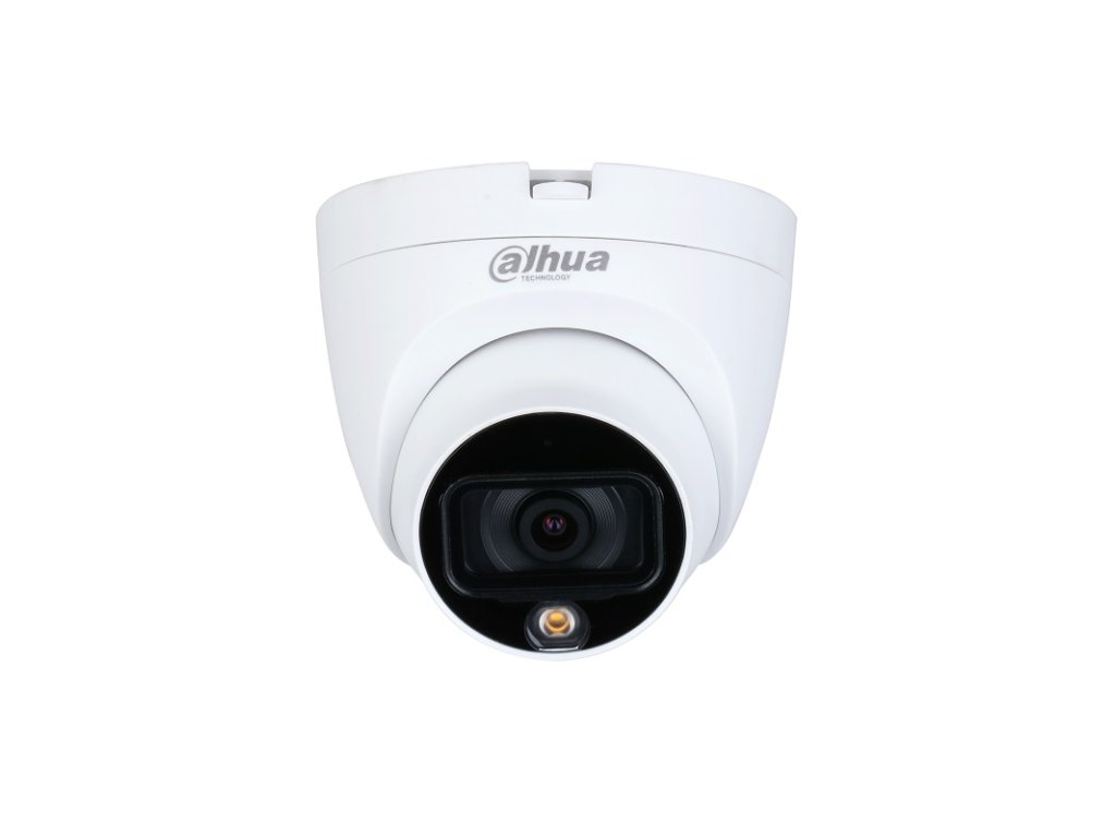 5 Mpx Full-color Starlight HDCVI dome kamera, exteriérová, biely LED prísvit do 20 m, rozlíšenie 2880 × 1620 px (16:9) @ 25 fps, citlivosť 0,001 lx / F1.0, 0 lx so zapnutou LED, pevný objektív 3,6 mm, uhol záberu H: 88°, V: 46°, D: 104°, horizontálne otáčanie: 0°–360°, vertikálny náklon: 0°–78°, AWB, WDR 120 dB, BLC, HLC-Pro, AGC, 3D NR, zabudovaný mikrofón, pracovná teplota od -40 °C do +55 °C, IP 67, napájanie 12 V DC ±30 %, spotreba max. 4,4 W, rozmery ø97,1 × 91,4 mm, hmotnosť 0,24 kg