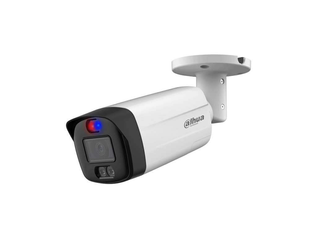 4K HDCVI kompaktná kamera s dvojitým prísvitom, 4K CMOS, rozlíšenie 3840 x 2160 px, pevný objektív 3,6 mm, uhol záberu: H: 85°, V: 45°, D: 100°, smart IR prísvit 40 m, biele svetlo 40 m, horizontálne otáčanie 0°–360°, vertikálny náklon 0°–90°, rotácia 0°–360°, 2x výstražné farebne diódy, zabudovaný mikrofón, AWB, WDR 120 dB, BLC, GC, 3D NR, Defog, napájanie 12 V DC ±30 %, spotreba max. 10,45 W, pracovná teplota od -40 °C do +60 °C, IP 67, rozmery ø90,7 x 240,7 mm, hmotnosť 0,48 kg