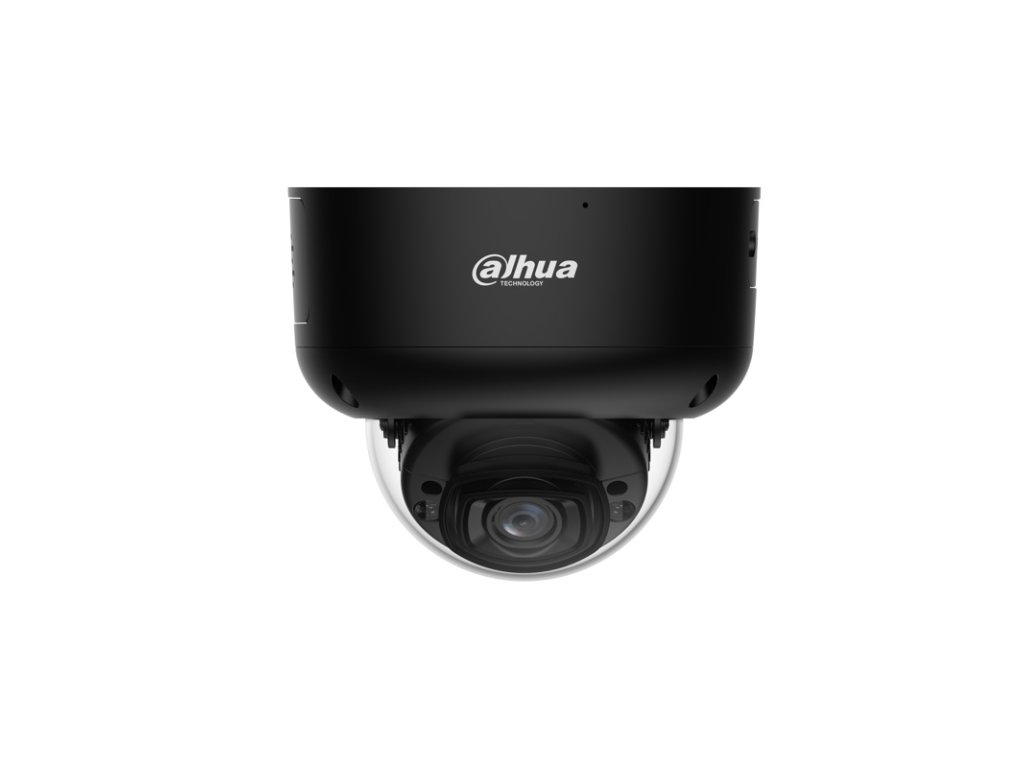 8 Mpx Dome IP kamera, exteriérová, Day/Night, IR 60 m, WL 50 m, 1/1.8" 8 Megapixel CMOS, rozlíšenie 3840 x 2160 px @ 1-25/30 fps, citlivosť 0,0005 lx @F1.0, objektív 3,6 mm, uhol záberu H: 93°, V: 50°, D: 111°; AWB, AI-ISP, BLC, HLC, WDR 130dB, AGC, ROI, 3DNR, SSA, Defog, LDC, WizColor; kompresia H.265 / H.264 / H.264H / H.264B / MJPEG (Sub Stream), RTMP, podpora Smart a AI Codekov, ONVIF kompatibilné; inteligentné funkcie: IVS (Perimeter Protection), Large AI model (Xinghan), SMD 4.0, AcuPick, Face Detection, People Counting, Queue Management, Heat Map, Video Metadata, Smart Search; Aktívne odstrašenie; RJ-45, zabudovaný mikrofón a reproduktor, micro SD karta max. 1 TB, alarm I/O 1/1, audio I/O 1/1, 1x RS-485, 1x 12 V DC output, napájanie 12 V DC / PoE+ (802.3at) / ePoE, Dual Power Backup, spotreba max. 23,9 W, pracovná teplota od -40 °C do +60 °C, IP67, IK10, rozmery 105,5 mm x ø126 mm, hmotnosť 0,73 kg, čierna verzia.