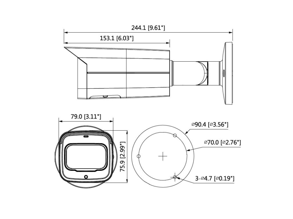 4 Mpx Pro AI Starlight kompaktná IP kamera, exteriérová, Day/Night, Smart IR prísvit s dosvitom 50 m, 1/1.8" 4Megapixel progressive scan CMOS, rozlíšenie 2688 × 1520 px, snímkovanie 25/30 fps, citlivosť 0,002 lx @ F1,6, pevný objektív 6,0 mm, uhol záberu H: 56°, V: 31°, horizontálne otáčanie 360°, vertikálny náklon 0°–90°, AWB, AGC, ROI, BLC, HLC, WDR (120 dB), 3D DNR, Face detection, People counting, kompresia H.265 / H.265+ / H.264 / H.264+ / H.264B / H.264H / MJPEG (sub stream), ONVIF kompatibilné, audio I/O 1/1, alarm I/O 1/1, RJ-45 (10/100 Base-T), slot na MicroSD kartu max. 256 GB, pracovná teplota od -30 °C do +60 °C, IP 67, IK 10, napájanie DC 12 V (±30 %), PoE (802.3af), spotreba < 8,7 W, podpora RTMP, rozmery 244,1 × 79,0 × 75,9 mm, hmotnosť 0,815 kg