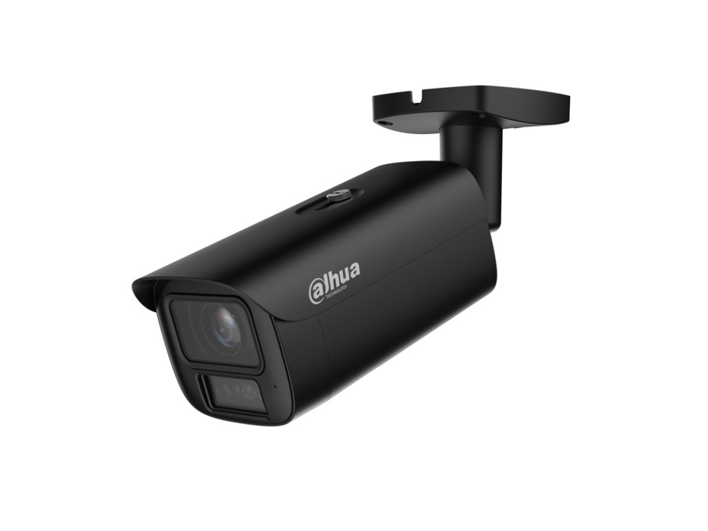 4 Mpx kompaktná IP kamera, exteriérová, Day/Night, IR 60 m, WL 60 m, 1/1.8" 4 Megapixel CMOS, rozlíšenie 2688 x 1520 px @ 1-25/30 fps, citlivosť 0,0007 lx @F1.8, objektív 2,7-12 mm, uhol záberu H: 115° - 47°, V: 62° - 27°, D: 137° - 54°; AWB, AI-ISP, BLC, HLC, WDR 140dB, AGC, ROI, 3DNR, SSA, Defog, LDC, Full Color, EIS; kompresia H.265 / H.264 / H.264H / H.264B / MJPEG (Sub Stream), RTMP, podpora Smart a AI Codekov, ONVIF kompatibilné; inteligentné funkcie: IVS (Perimeter Protection), Large AI model (Xinghan), SMD 4.0, AcuPick, Face Detection, People Counting, Queue Management, Heat Map, Video Metadata, Smart Search; RJ-45, zabudovaný mikrofón, micro SD karta max. 1 TB, alarm I/O 2/1, audio I/O 1/1, napájanie 12 V DC / PoE+ (802.3at) / ePoE, Dual Power Backup, spotreba max. 22,1 W, pracovná teplota od -40 °C do +60 °C, IP67, IK10, rozmery 279,8 x 96,7 x 94,9 mm, hmotnosť 1,09 kg, čierna verzia.