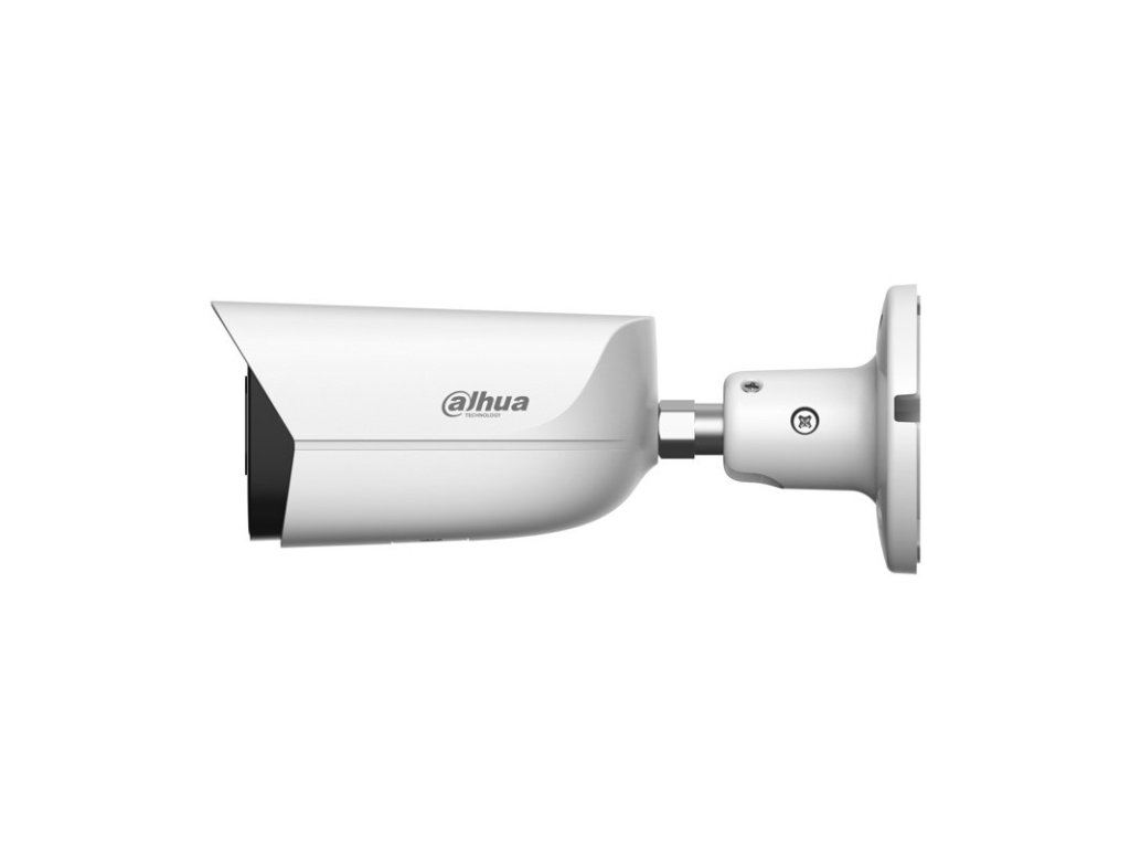 8 Mpx kompaktná IP kamera, exteriérová, Day/Night , IR 50 m, WL 50 m, 1/1.8" 8 Megapixel CMOS, rozlíšenie 3840 x 2160 px @ 1-25/30 fps, citlivosť 0,0008 lx @F1.6, objektív 2,8 mm, uhol záberu H: 110°, V: 56°, D: 134°; AWB, AI-ISP, BLC, HLC, WDR 120dB, AGC, ROI, 3DNR, SSA, Defog, LDC, Full Color; kompresia H.265 / H.264 / H.264H / H.264B / MJPEG (Sub Stream), RTMP, podpora Smart a AI Codekov, ONVIF kompatibilné; inteligentné funkcie: EPTZ, IVS (Perimeter Protection), Large AI model (Xinghan), SMD 4.0, AcuPick, Face Detection, People Counting, Queue Management, Heat Map, Video Metadata, Smart Search; RJ-45, zabudovaný mikrofón, micro SD karta max. 1 TB, alarm I/O 1/1, audio I/O 1/1, napájanie 12 V DC / PoE+ (802.3at) / ePoE, Dual Power Backup, spotreba max. 15,6 W, pracovná teplota od -40 °C do +60 °C, IP67 rozmery 192,7 x 70,5 x 66,4 mm, hmotnosť 0,610 kg.