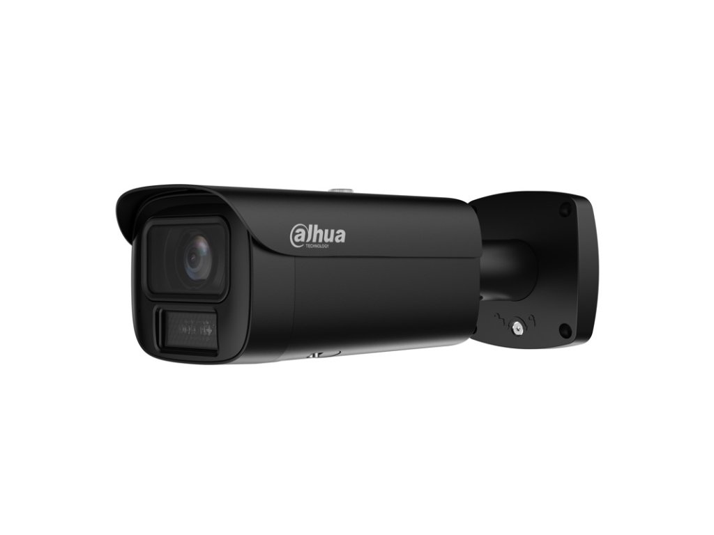 8 Mpx kompaktná IP kamera, exteriérová, Day/Night, IR 60 m, WL 60 m, 1/1.8" 8 Megapixel CMOS, rozlíšenie 3840 x 2160 px @ 1-25/30 fps, citlivosť 0,0008 lx @F1.6, objektív 2,7-12 mm, uhol záberu H: 113° - 47°, V: 60° - 23°, D: 133° - 53°; AWB, AI-ISP, BLC, HLC, WDR 120dB, AGC, ROI, 3DNR, SSA, Defog, LDC, Full Color, EIS; kompresia H.265 / H.264 / H.264H / H.264B / MJPEG (Sub Stream), RTMP, podpora Smart a AI Codekov, ONVIF kompatibilné; inteligentné funkcie: EPTZ, IVS (Perimeter Protection), Large AI model (Xinghan), SMD 4.0, AcuPick, Face Detection, People Counting, Queue Management, Heat Map, Video Metadata, Smart Search; RJ-45, zabudovaný mikrofón, micro SD karta max. 1 TB, alarm I/O 2/1, audio I/O 1/1, napájanie 12 V DC / PoE+ (802.3at) / ePoE, Dual Power Backup, spotreba max. 22,1 W, pracovná teplota od -40 °C do +60 °C, IP67, IK10 rozmery 279,8 x 96,7 x 94,9 mm, hmotnosť 1,09 kg, čierna verzia.