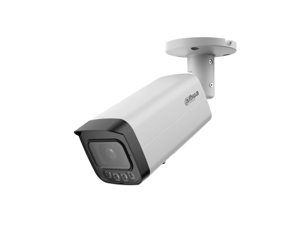 8 Mpx kompaktná IP kamera, exteriérová, Day/Night, IR 80 m, WL 60 m, 1/1.8" 8 Megapixel CMOS, rozlíšenie 3840 x 2160 px @ 1-25/30 fps, citlivosť 0,0008 lx @F1.6, objektív 6 mm, uhol záberu H: 60°, V: 34°, D: 67°; AWB, AI-ISP, BLC, HLC, WDR 120dB, AGC, ROI, 3DNR, SSA, Defog, LDC, Full Color; kompresia H.265 / H.264 / H.264H / H.264B / MJPEG (Sub Stream), RTMP, podpora Smart a AI Codekov, ONVIF kompatibilné; inteligentné funkcie: EPTZ, IVS (Perimeter Protection), Large AI model (Xinghan), SMD 4.0, AcuPick, Face Detection, People Counting, Queue Management, Heat Map, Video Metadata, Smart Search; RJ-45, zabudovaný mikrofón, micro SD karta max. 1 TB, alarm I/O 1/1, audio I/O 1/1, napájanie 12 V DC / PoE+ (802.3at) / ePoE, Dual Power Backup, spotreba max. 15,6 W, pracovná teplota od -40 °C do +60 °C, IP67, IK10 rozmery 238 x 90,7 x 90,7 mm, hmotnosť 0,835 kg.