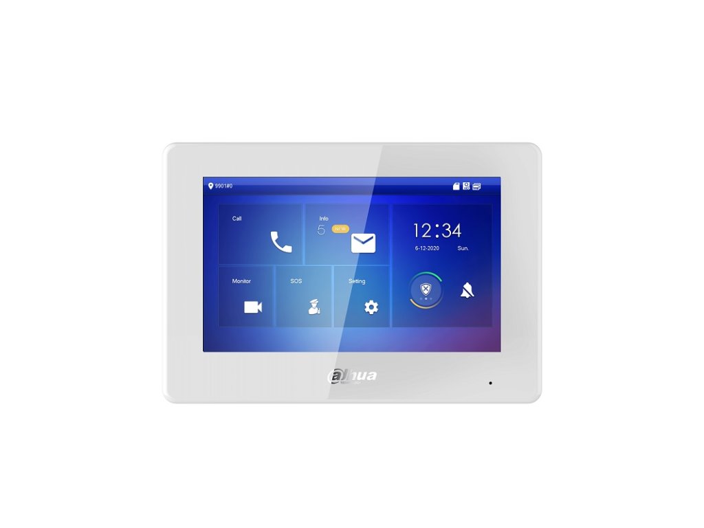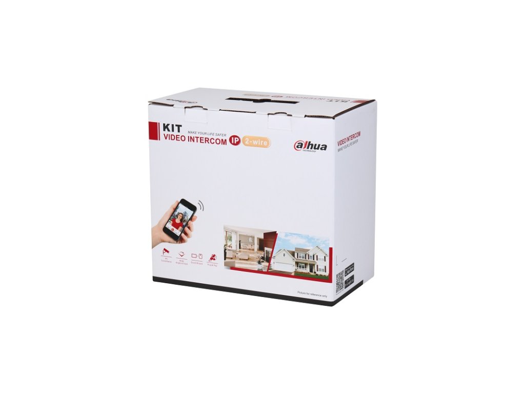 Dahua inštalačná sada TCP/IP, obsahuje monitor VTH5421HW, 7" farebný dotykový TFT displej s rozlíšením 1024 x 600 px, rozmery 189 x 130 x 27 mm, dverná jednotka VTO2201F-P, 1 mechanické tlačidlo, kamera 2MP CMOS, uhol záberu 140°, 1x ovládanie zámku, rozšíriteľné o druhý zámok cez DEE1010 (nie je súčasťou balenia), IP 65, rozmery 130 x 96 x 29 mm, montážna krabica VTM115, systémové napájanie cez PoE Switch PFS3006-4ET-36 (súčasť balenia), podpora náhľadu z Dahua kamier, volanie a odomknutie dverí cez mobilnú aplikáciu Dahua DMSS