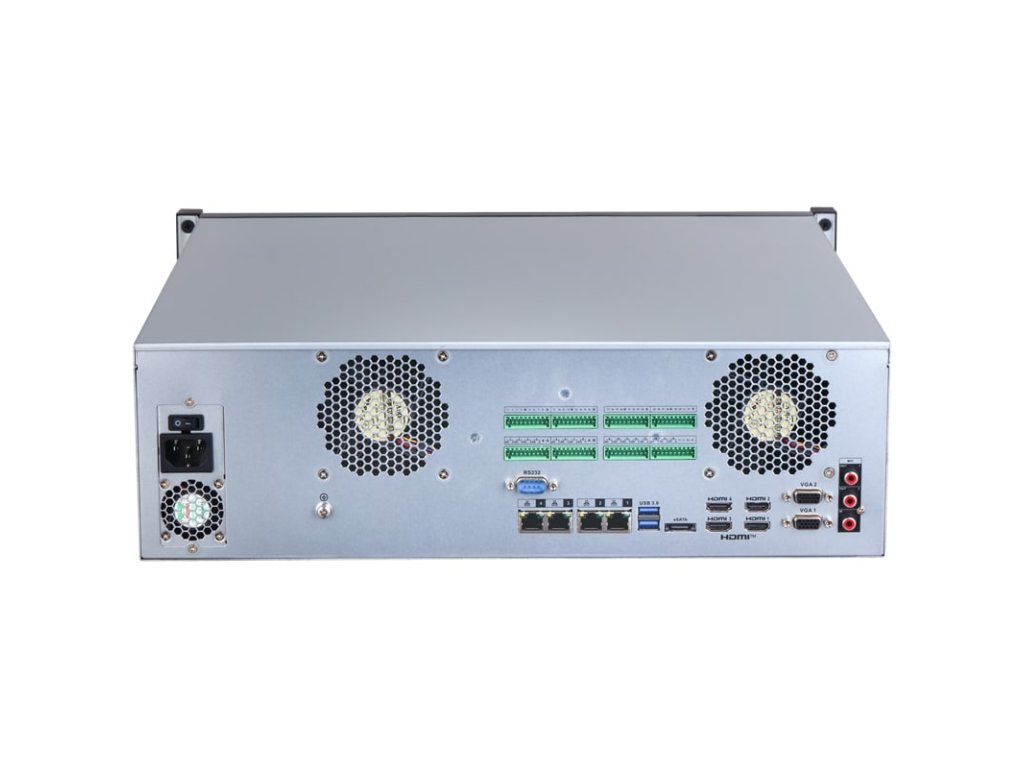Videorekordér IP sieťový 64-kanálový, záznam / živý obraz / prehrávanie v 4K, OS Linux, podporované formáty Smart H.265+ / Smart H264+ / H.264 / H.265; záznam max. do 1280 Mbps (Pri Ai max 640 Mbps), maximálne rozlíšenie 32 Mpx na kameru; 16x SATA III 3.5" HDD, max. 20 TB / HDD, Raid 0 / 1 / 5 / 6 / 10 (podpora HDD Hot-swaping), podpora ONVIF, podpora IP PTZ Dahua; video analytické funkcie na NVR: AcuPick max 64 kanálov (NVR + kamera) Perimeter Protection max. 32 kanálov, Face Detection max. 8 kanálov, Face Recognition max. 32 kanálov (FD kamera + FR NVR), max. 8 kanálov (FR+ FD na NVR), SMD Plus max. 32 kanálov, Video Metadata max. 8 kanálov; podpora video analytických funkcií: AcuPick, Face Detection, IVS, Face Recognition, Video Metadata, SMD Plus, Stereo Analysis, crowd disribution, people counting, ANPR, vehicle density, object monitoring; 4x RJ-45 port (10/100/2500 Mbps), 4x HDMI + 2x VGA, 2x RS-485 (1x half-duplex + 1x full duplex), 1x RS-232, 4x USB (z toho 2x USB 3.0), 1x eSATA, Audio RCA I/O 1/2, Alarm I/O 32/16; rozmery 485,0 × 508,3 × 133,2 mm, hmotnosť 11,95 kg (bez HDD), 100–240 VAC, 50/60 Hz, pracovná teplota od -10 °C do +55 °C