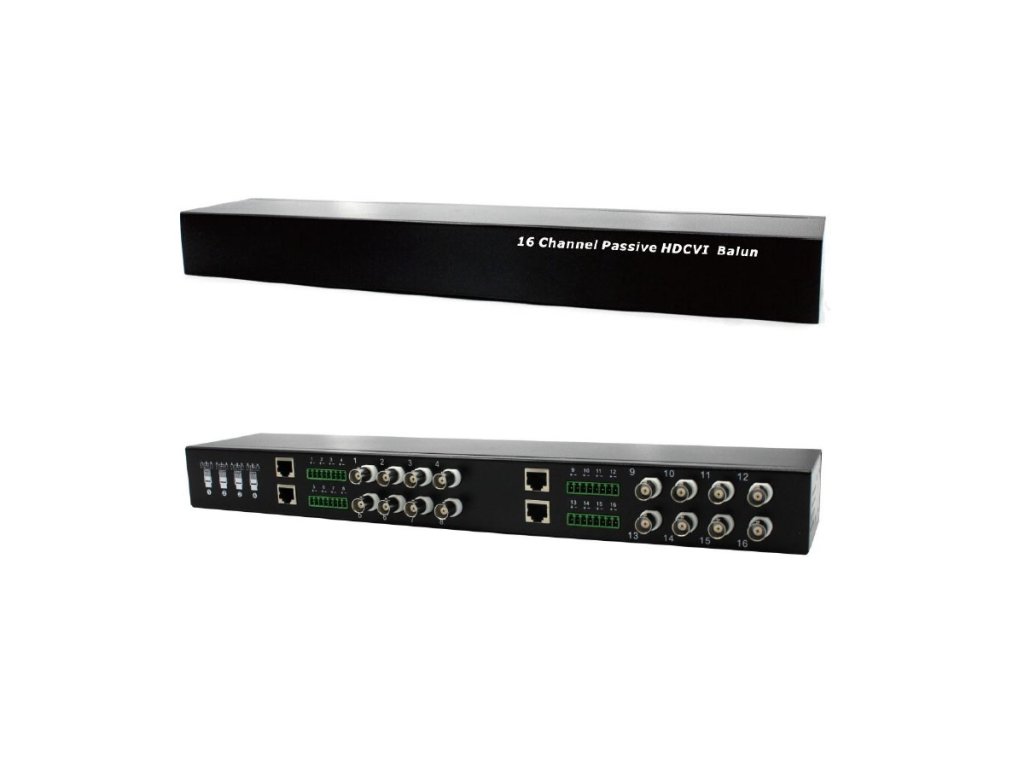 16kanálový HDCVI pasívny video prevodník, maximálna prenosová vzdialenosť 720p: 400 m, 1080p: 250 m, 4 Mpx: 200 m, odolnosť proti rušeniu >60 dB, prepäťová ochrana, rozmery 430 x 100 x 44,5 mm, hmotnosť 1,25 kg, pracovná teplota od -10 °C do +55 °C
