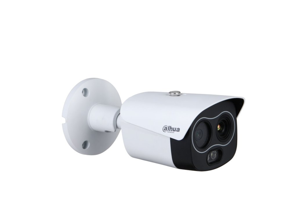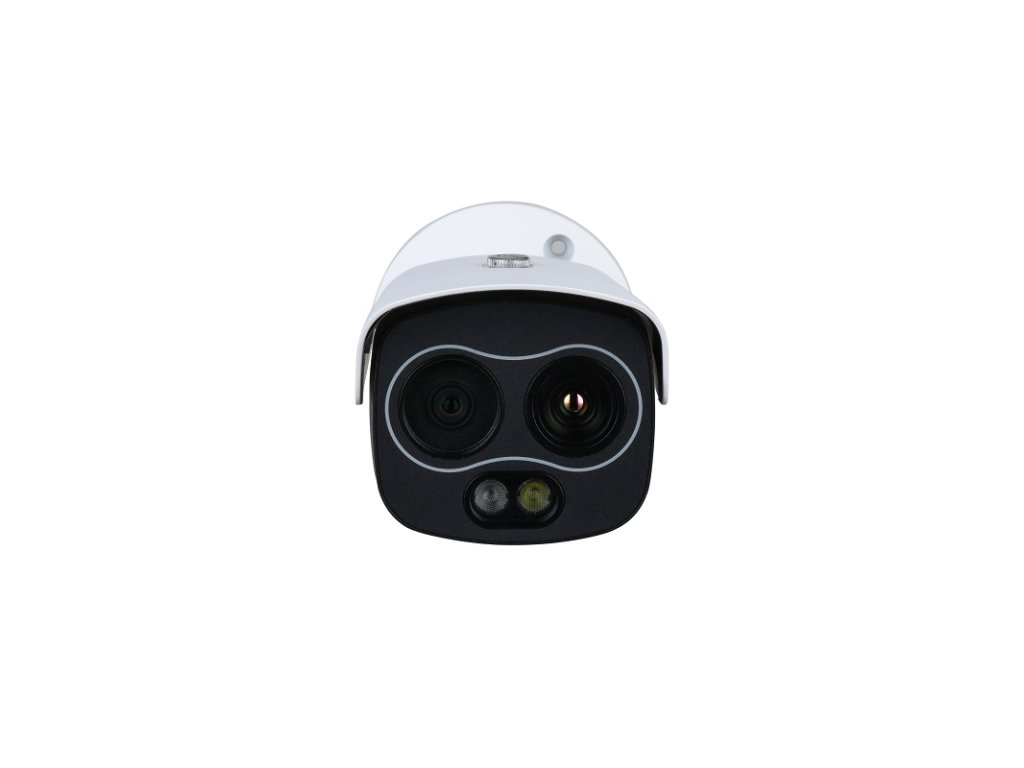 Bullet hybridná termokamera, exteriérová, senzor Vanadium Oxide Uncooled focal plane detector, rozlíšení termovízie 256 × 192 px @ 1-25 fps, tepelná citlivosť <40 mK @ F1.0, rozsah spektra 8–14 µm, rozteč pixelov 12 µm, objektív 3,5 mm, uhol záberu: H: 50,6° V: 37,8°, 3D NR, AGC; rozlíšenie viditeľného spektra: 1/2,7 CMOS 4 Mpx (2336 × 1752 px) @ 1-25 fps, objektív 4 mm, citlivosť 0,05 lux (Color), uhol záberu H: 71,2°, V: 52°, AWB, AGC, BLC, HLC, DWDR, 3D NR, RoI; IR prísvit 30 m; kompresia H.265 / H.264 / H.264H / MJEPG; ONVIF; inteligentné funkcie: Meranie teploty, Perimeter Protection, Heat Detection Alarm, Cold a Spot Trace, Human a Vehicle Classification, Smoking Detection, Call Detection, Temperature Range, Temperature Accuracy, Temperature Mode; alarm I/O 2/2, audio I/O 1/1, 1x RS-485, slot na MicroSD kartu 256 GB, napájanie 12 V DC / 1A, PoE (802.3af), spotreba max. <10 W, rozmery 205,5 x 90,4 x 90,1 mm pracovná teplota od -30 °C do +60 °C, hmotnosť <0,9 kg