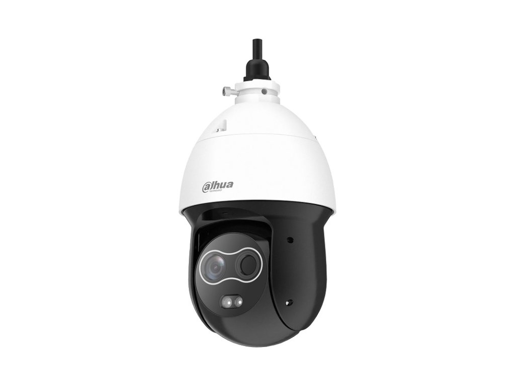 PT hybridná termokamera, exteriérová, senzor Vanadium Oxide Uncooled focal plane detrector, rozlíšení termovízie 256 × 192 px @ 1-25 fps, tepelná citlivosť < 40 mK @ F1.0, rozsah spektra 8–14 µm, rozteč pixelov 12 µm, objektív 3,5 mm, uhol záberu: H: 50,6°, V: 37,8°; rozlíšenie viditeľného spektra 4 Mpx, 1/2.7 CMOS, rozlišenie 2336 × 1752 px @ 1-25 fps, objektív 4 mm, uhol video záberu H: 71,2°, V: 52°, 0,05 lux COLOR, BLC, HLC, DWDR, AWB, Defog; Inteligentné funkcie: Meranie teploty, IVS (perimeter protection), Cold / Hot Spot Trace, Target Distinction, Smoking Detection, Call Detection; H.265 / H.264 / H.264H, ONVIF; alarm I/O 2/1, audio I/O 1/1, 1x RS-485, 1x CVBS, BNC output, slot na MicroSD kartu 256 GB, napájanie 12 V DC / 1 A, PoE+ (802.3at), spotreba max. <19,6 W, rozmery 295 x ø160 mm, pracovná teplota od -30 °C do +60 °C, hmotnosť <3,2 kg, IP 66, súčasťou balenia je držiak na stenu