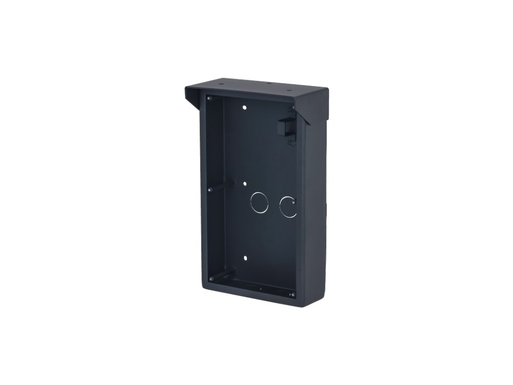 Inštalačná krabica so strieškou pre 2 moduly a rámik IP modulárneho systému Dahua VTO4202F, na omietku, čierna, hliník, rozmery 241 x 141 x 88 mm, pre inštaláciu potrebný rámik VTM25P2