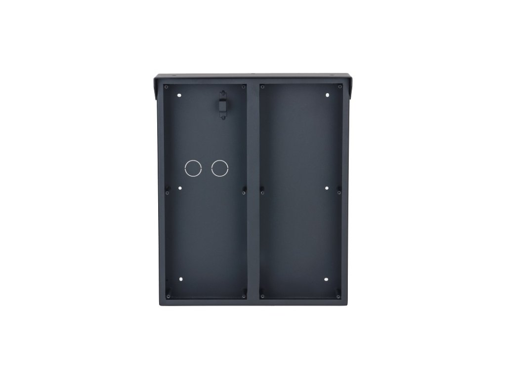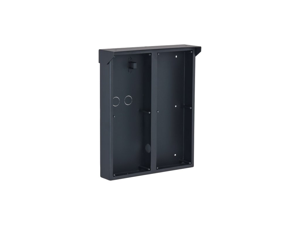 Inštalačná krabica so strieškou pre 2 x 3 moduly a rámik IP modulárneho systému Dahua VTO4202F, na omietku, čierna, hliník, rozmery 342 x 282 x 88 mm, pre inštaláciu sú potrebné dva rámiky VTM24P3