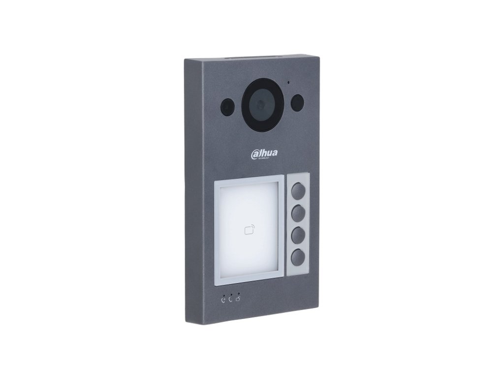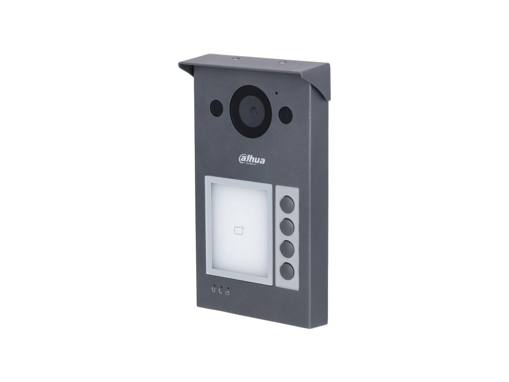 IP Dahua dverná kamerová jednotka so štyrmi tlačidlami, balenie obsahuje 4, 2 a 1 tlačidlový modul, ktorý je možné použiť podľa potreby, súčasťou je integrovaná čítačka 13,56 MHz, podsvietená menovka, antivandal nerez prevedenie, 2 Mpx farebná kamera, 139° uhol pohľadu, H.264/H.265 kompresia, TCP/IP komunikácia, nastavovanie cez webové rozhranie, IR prisvetlenie snímaného priestoru, funkcia zanechania odkazu užívateľovi (funkcia dostupná iba s monitormi VTHxxxx), IP 65, IK 08, 1x kontakt NO/NC pre ovládanie zámku (diaľkovo aplikáciou DMSS), 1x NO kontakt odchodového tlačidla, 1x RS-485 pre pripojenie modulu ovládania 2. dverného zámku DEE1010B, napájanie 12 V DC / 500 mA (zdroj nie je súčasťou balenia) alebo PoE (802.3af – nie je kompatibilné s 24 V switchom Dahua VTNS1060), podpora Wi-Fi, montáž na omietku, rozmery 188 x 107 x 30 mm. 1x výstup 12 V DC/ 200 mA, 1x NO/NC kontakt pre pripojenie zámku.