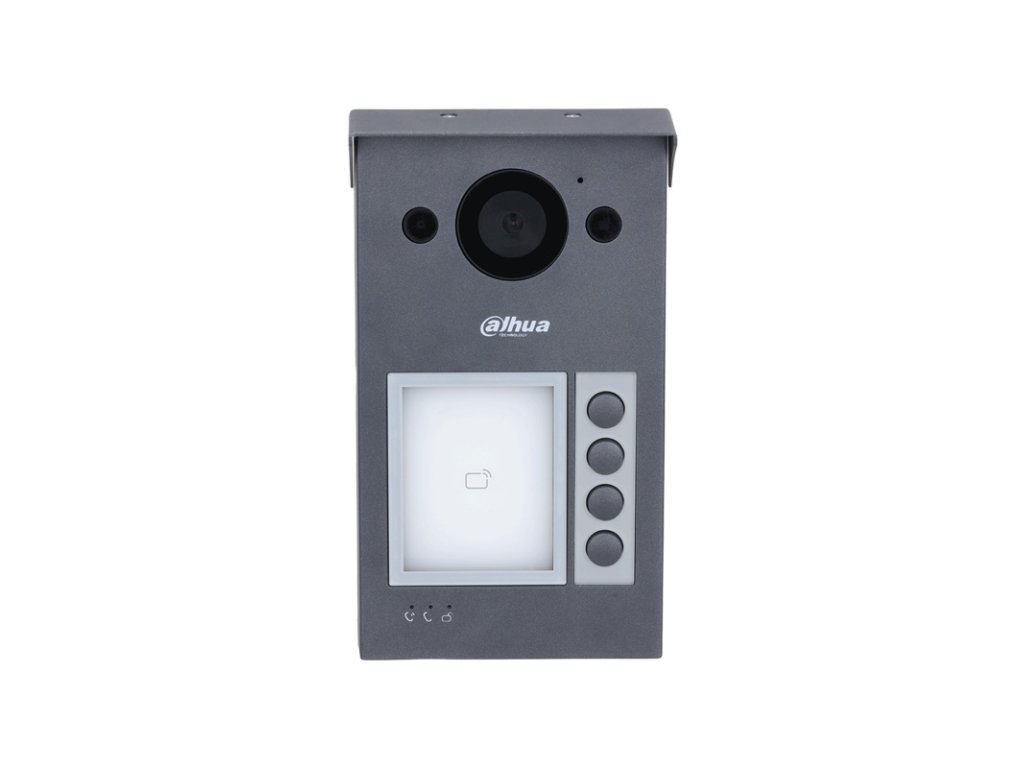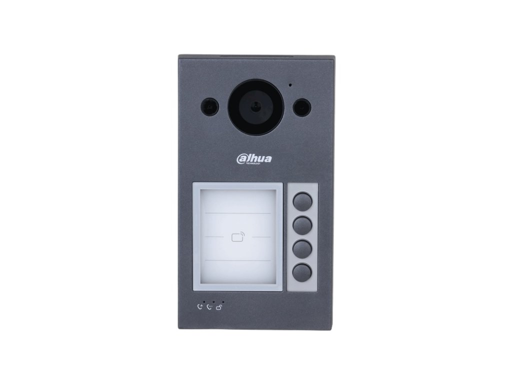 IP Dahua dverná kamerová jednotka so štyrmi tlačidlami, balenie obsahuje 4, 2 a 1 tlačidlový modul, ktorý je možné použiť podľa potreby, súčasťou je integrovaná čítačka 13,56 MHz, podsvietená menovka, antivandal nerez prevedenie, 2 Mpx farebná kamera, 139° uhol pohľadu, H.264 / H.265 kompresia, TCP/IP komunikácia alebo Dahua 2-wire, nastavovanie cez webové rozhranie, IR prisvetlenie snímaného priestoru, funkcia zanechania odkazu užívateľovi (funkcia dostupná iba s monitormi VTHxxxx), IP 65, IK 08, 1x kontakt NO/NC pre ovládanie zámku (diaľkovo aplikáciou DMSS), 1x NO kontakt odchodového tlačidla, 1x RS-485 pre pripojenie modulu ovládania 2. dverného zámku DEE1010B, napájanie 48 V DC / 1000 mA (zdroj nie je súčasťou balenia), PoE (802.3af) alebo dvojvodičovým switchom VTNS2003B-2, montáž na omietku, rozmery 188 x 107 x 30 mm.1x výstup 12 V DC/ 200 mA, 1x NO/NC kontakt pre pripojenie zámku.