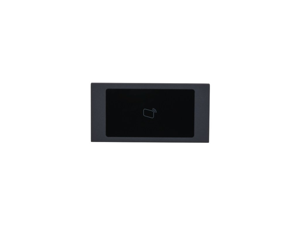 Polovičný modul RFID pre IP Dahua modulárnu jednotku VTO4202F, čierny, RFID bezkontaktná čítačka (MIFARE 13,56 MHz) pre ovládanie zámku, kapacita 10 000 kariet, hliníkové prevedenie, nastavovanie cez webové rozhranie, napájanie z dvernej jednotky, montáž do inštalačného rámika, rozmery 100,0 x 49,9 x 28,5 mm