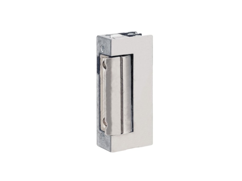Elektrický zámok so skrytým momentovým kolíkom (zámok ostáva odistený až do opätovného privretia dverí), nastaviteľná západka, napájanie 6–12 V DC/AC 1500 mA, rozmery: 16,4 x 67 x 28 mm, bez lišty, záruka 5 rokov