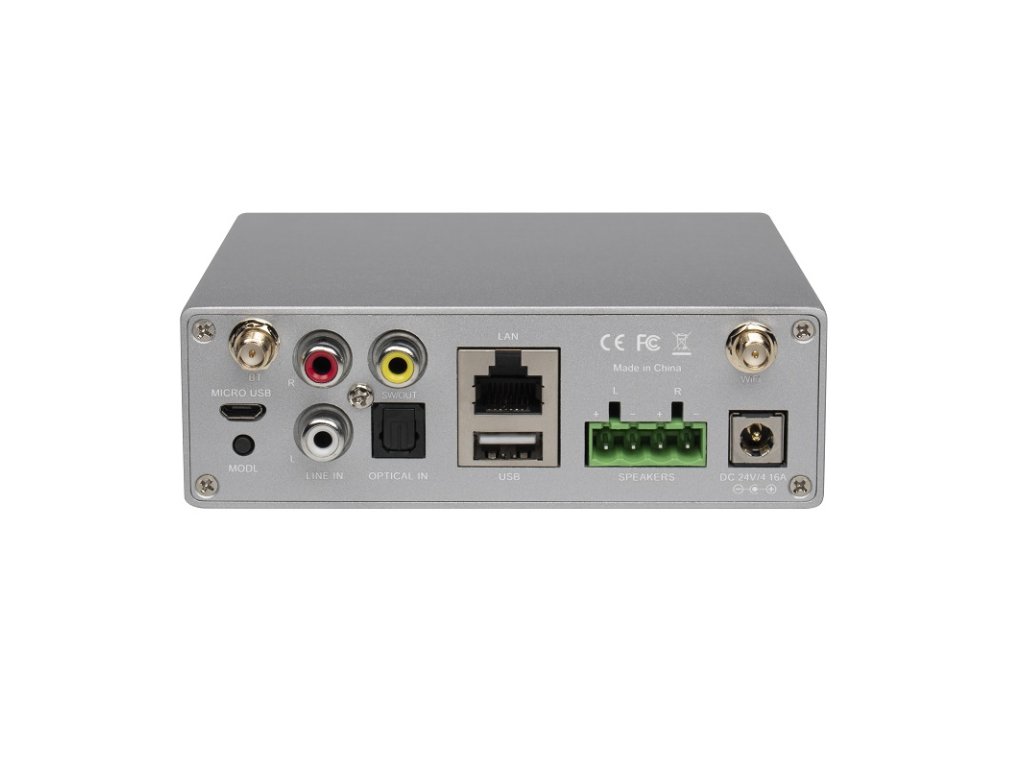 Digitálny Wi-Fi / LAN / BT / USB streamovací zosilňovač 2x 50 W / 4 Ohm, 2x 30 W / 8 Ohm, umožňuje streamovanie z USB, NAS alebo streamovacích služieb ako napr. Spotify, Tidal, Deezer, Qobuz, Amazon Music a iné pomocou 4STREAM aplikácie. Pridaním ďalších jednotiek vytvoríme bezdrôtový multiroom alebo multizónový audio systém pre celý dom. 4STREAM sa dá stiahnúť z Google Play alebo APPSTORE. Balenie obsahu plne funkčný diaľkový ovládač na ovládanie zariadenia bez nutnosti použitia mobilného telefónu. Možnosť nastavenie EQ pomocou aplikácie alebo diaľkového ovládača. Konektivita: IEEE802.11 b/g/n 2,4G, Bluetooth: 5.0, USB 2.0. Frekvenčná odozva: 20 Hz – 20 kHz, Príkon: 24 V / 4,16 A, Vstup USB 2.0 a 2x RCA, Impedancia reproduktorov 4 alebo 8 Ohm, Hudobný formát: MP3 / AAC / AAC+ / ALAC / APE / WAV / FLAC, Dekódovanie: 24 bit / 192 kHz. Predný panel obsahuje statusové LED. Rozmery: 120 × 113 × 37 mm (Š x H x V)