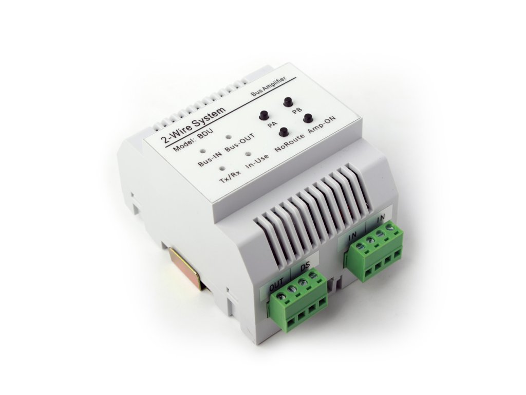 Modul pre zosilnenie videosignálu, slúži pre predĺženie dosahu 2 vodičovej zbernice, potrebné pripojenie ďalšou napájacou zostavou (PS5-24 + SP18), rozmery: 72x90x60 mm, prevedenie na DIN lištu
