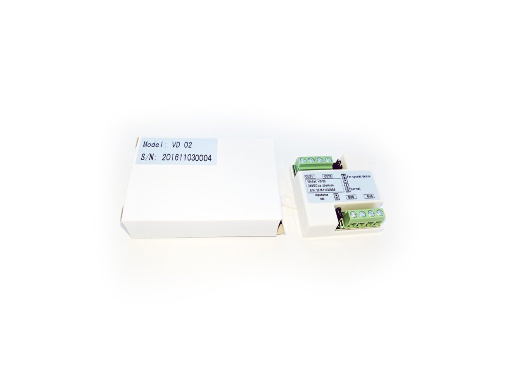 Video distribútor zbernice, 2x výstup pre odbočenie zbernice a zapojenie monitorov / audio telefónov / dverných jednotiek do hviezdy (na 1 ks VD 02 nie je možné pripájať kombinácie uvedených komponentov), rozmery 45 x 45 x 16 mm, vnútorné použitie
