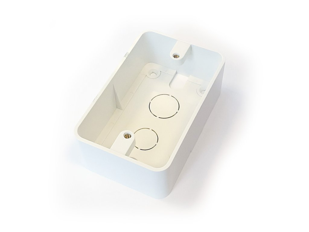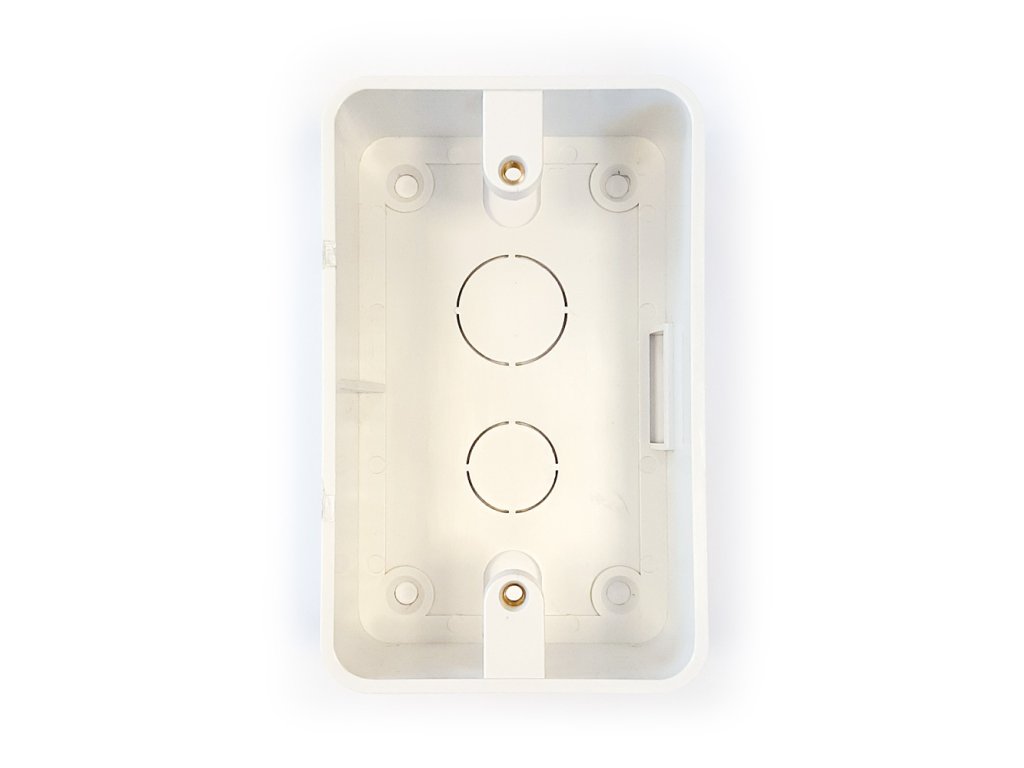Inštalačná krabica plastová pre čítačky FR1500, pod omietku / na omietku, otvory na vedenie kabeláže do krabice, rozmery 42 x 75 x 120 mm