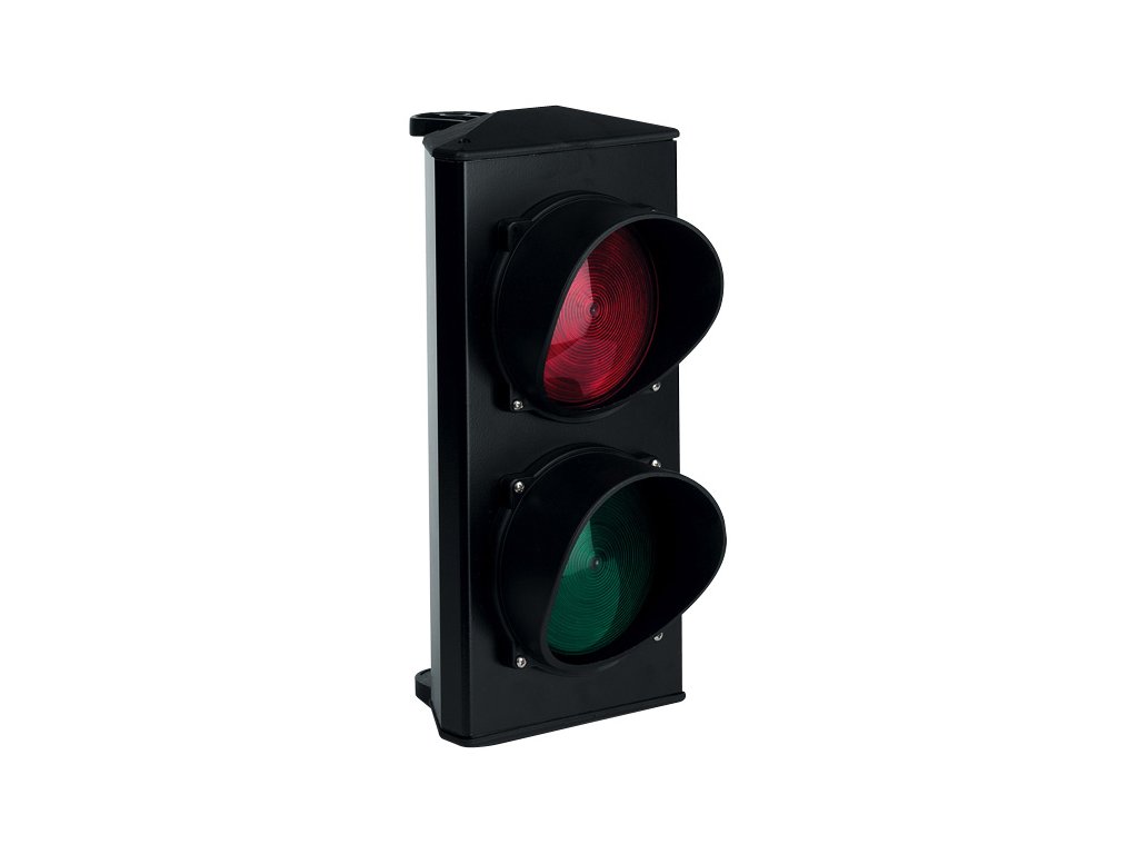 Semafor dvojkomorový (červená/zelená), O šošovky 120mm , použitie žiaroviek so závitom E27, napájanie 230VAC, čierny, rozmery 200x450x190mm , montáž na stenu, držiak súčasťou balenia