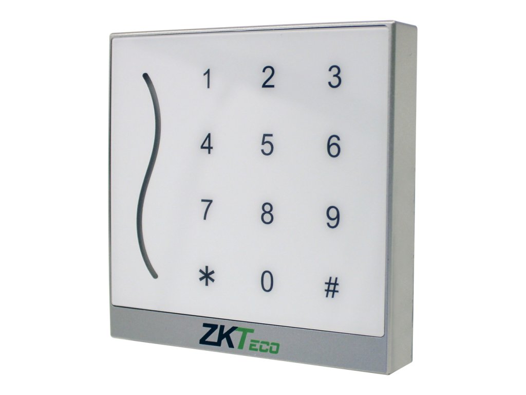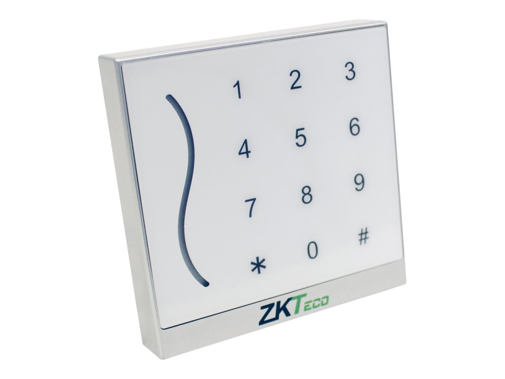 Prístupová čítačka RFID MIFARE, biela (na objednávku možné čierne prevedenie), čítanie bezkontaktných kariet štandardu MIFARE 13,56 MHz, dotyková kódová klávesnica pre ovládanie zámku, nastaviteľná Wiegand 26/34 komunikácia (2 vodiče), čítanie max. 0,3 sek., zvuková a LED signalizácia, napájanie 7–13 V DC, odber 80 mA / 12 V DC, zdroj nie je súčasťou, IP 65, exteriérové použitie, povrchová montáž, rozmery 90 x 90 x 16 mm