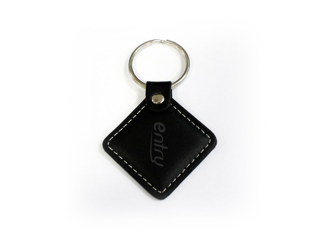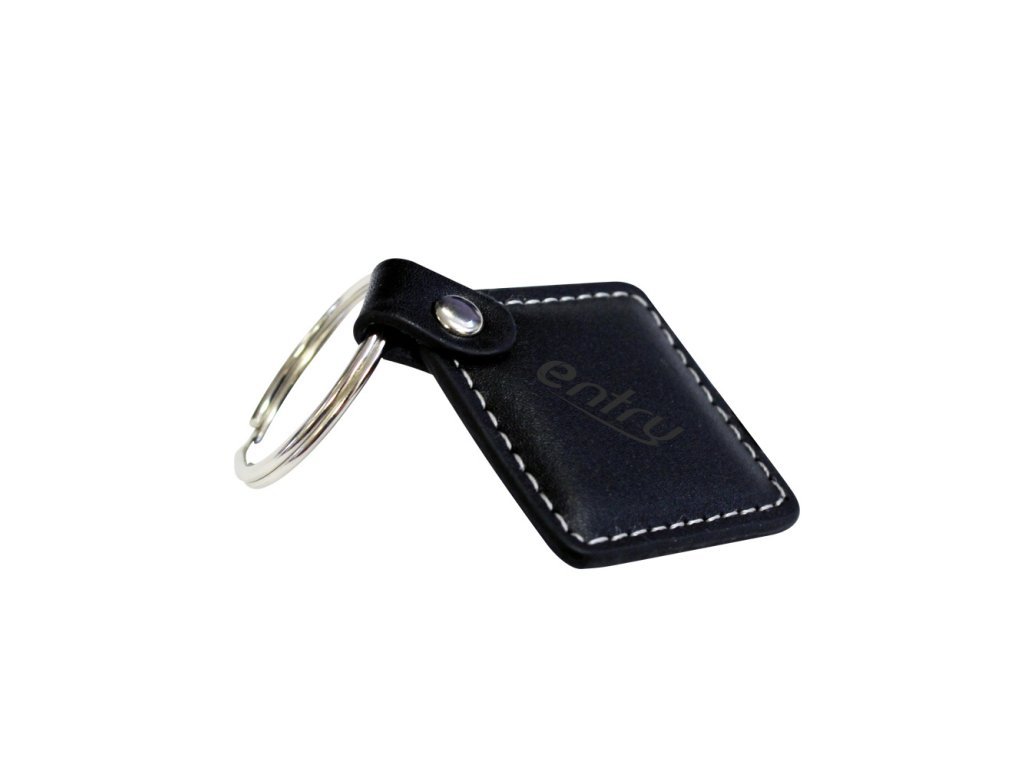 RFID bezkontaktná elektronická kľúčenka, (EM 4100, 125kHZ), kožená, čierna, entry logo