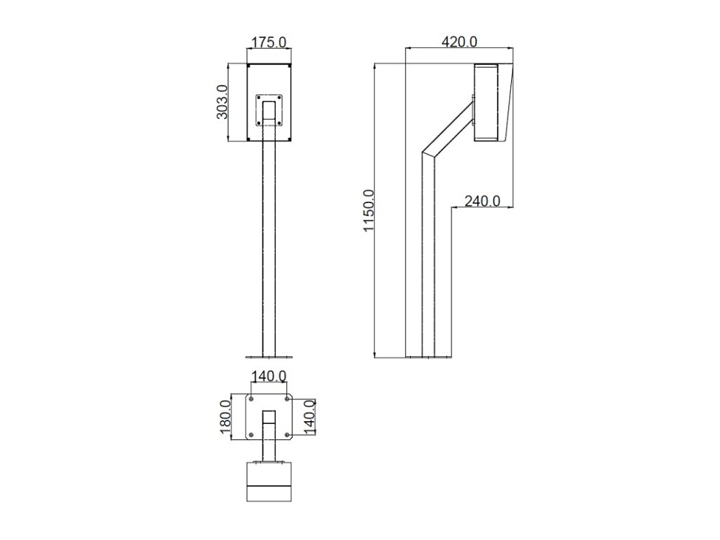 Univerzálny stĺpik pre vjazdové systémy. Predný nerezový panel o rozmere 170 x 300 mm je určený na umiestnenie prístupových čítačiek alebo dverných jednotiek. Stĺpik je výškovo prispôsobený pre vjazd osobných vozidiel. Celková výška 1150 mm. Voliteľné farebné prevedenie.