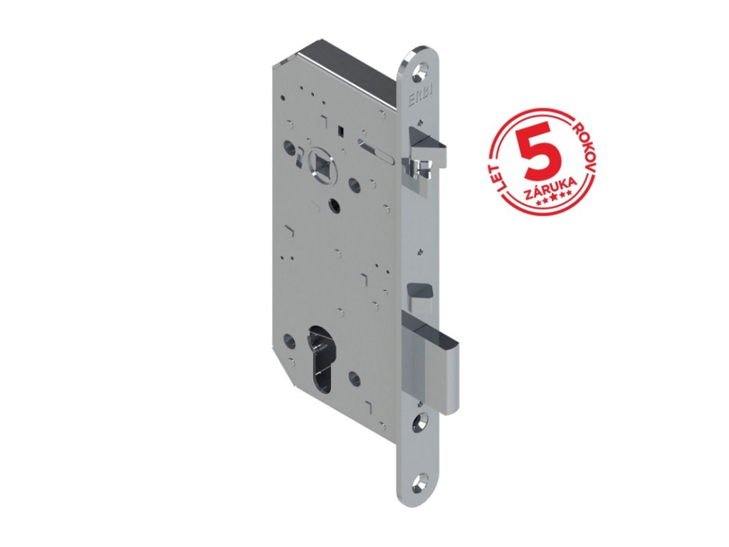 Samozamykací zámok, s panikovou funkciou kľuky, ľavo-pravé mechanické vyhotovenie, backset 50 mm, rozteč kľúka-zámok 90 mm, štvorhran 8 mm, rozmery vložky 170 x 80 x 15 mm, rozmery čela zámku 230 x 22 x 3 mm R11, vyhotovenie nerez