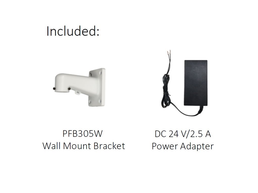 - Súčasťou balenia je držiak pre montáž na stenu (PFB305W) a napájací adaptér DC24V / 2.5 A.