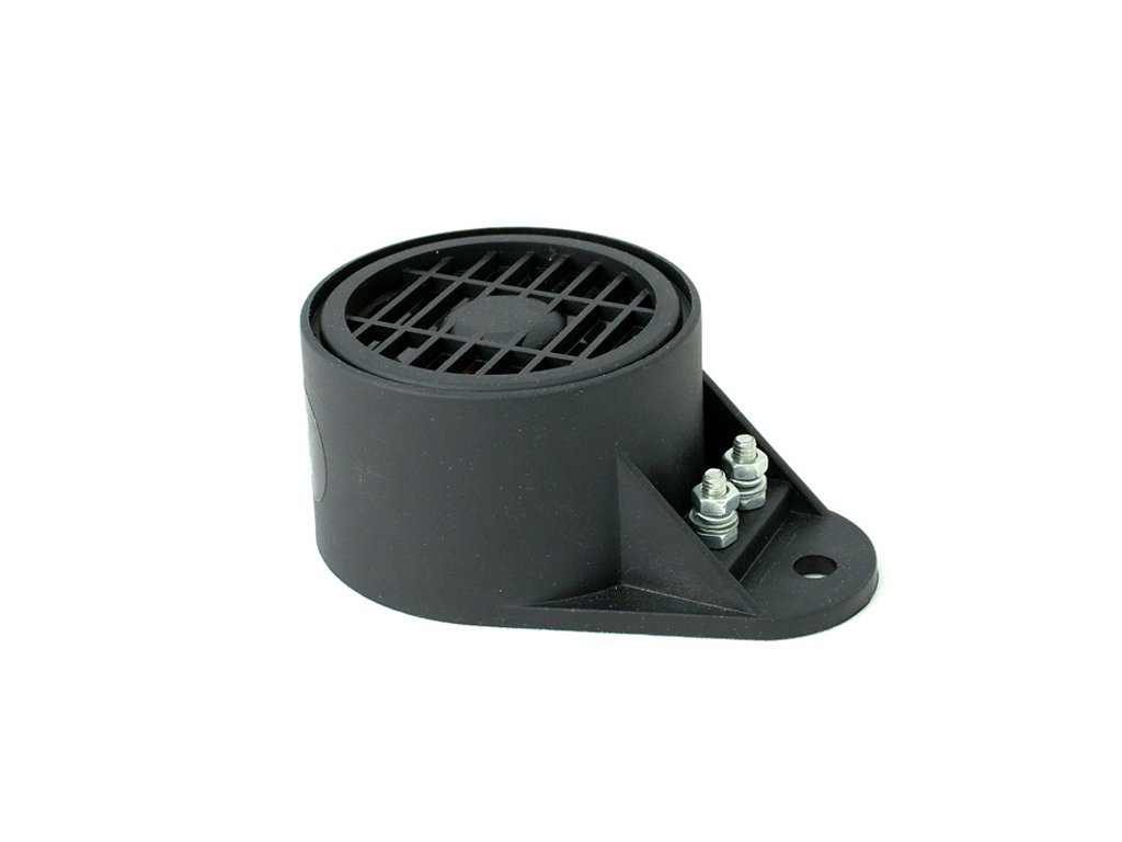 Akustická signalizácia cúvania 12-48V, 100 dB. Nenáročná montáž pripevnením 2 skrutkami a pripojením 2 vodičov (+/-). Rozmery 100x65x41 mm