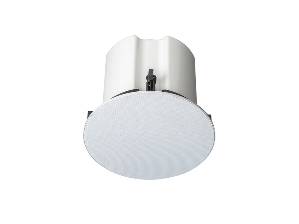 Stropný dvojpásmový reproduktor 50 W / 100 V s protipožiarnym krytom, moderným vzhľadom, magnetickým úchytom mriežky, odbočky 50 W, 25 W, 12,5 W, citlivosť 94 dB (1 W / 1 m), frekvenčný rozsah 65 Hz–24 kHz, vyžarovací uhol 180° (1 kHz), montážny otvor 238 mm, vonkajší priemer 264 mm, vnútorné použitie typ A, biely RAL 9016, pružinová montáž do podhľadu, IP 21, EN 54-24