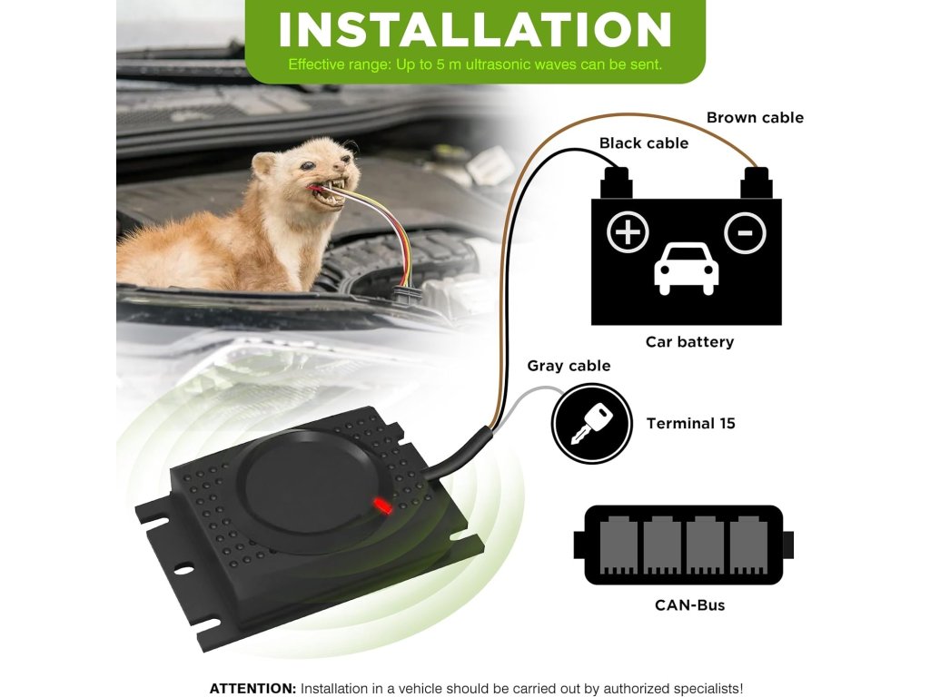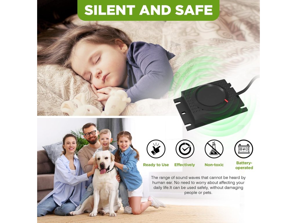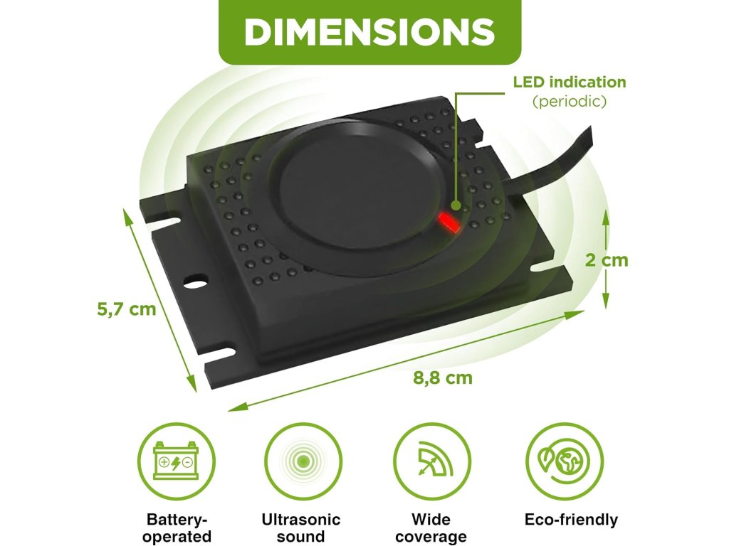Prístroj vydáva vysokofrekvenčné zvuky v 15-sekundových intervaloch vo dne aj v noci. Tieto zvuky, ktoré sú pre ľudské ucho sotva počuteľné, odpudzujú zvieratá a zabraňujú, aby si zvieratá zvykli na zvuk.