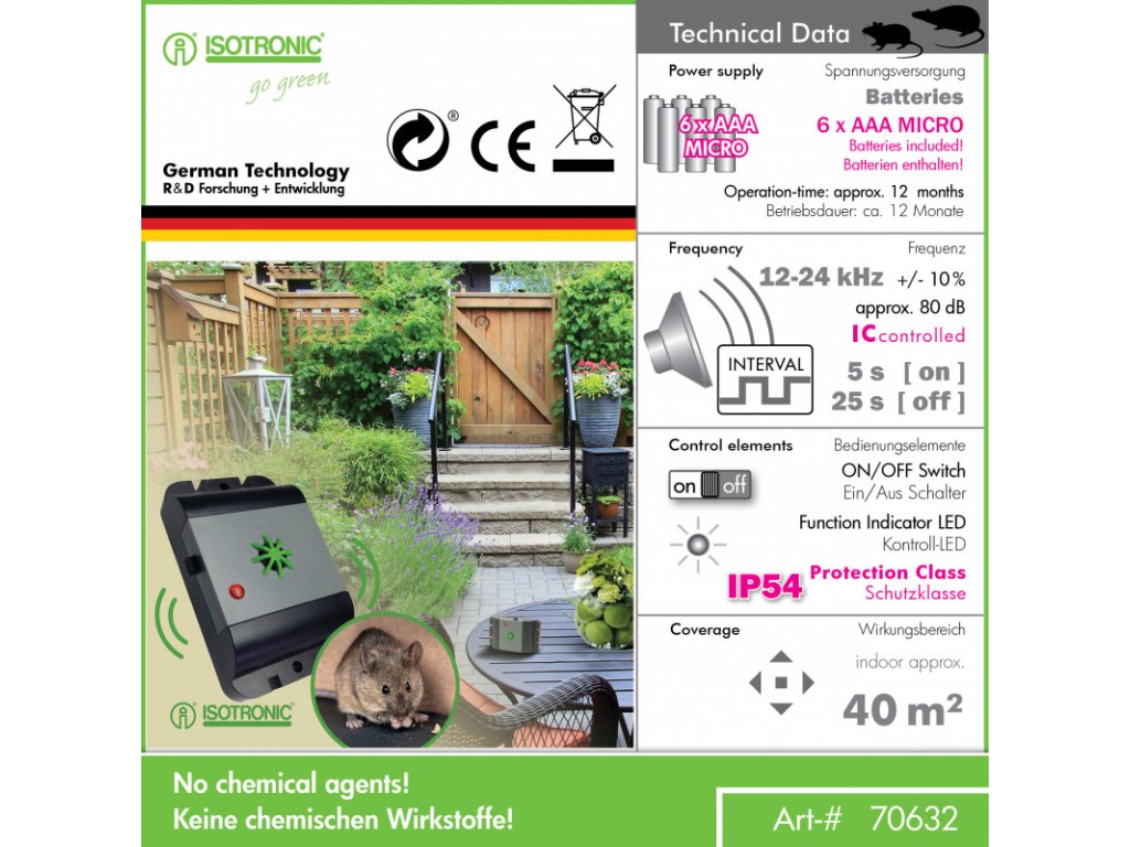 Isotronic M632 Odpudzovač, 12-24 kHz, IP54, Quartz, na batérie
