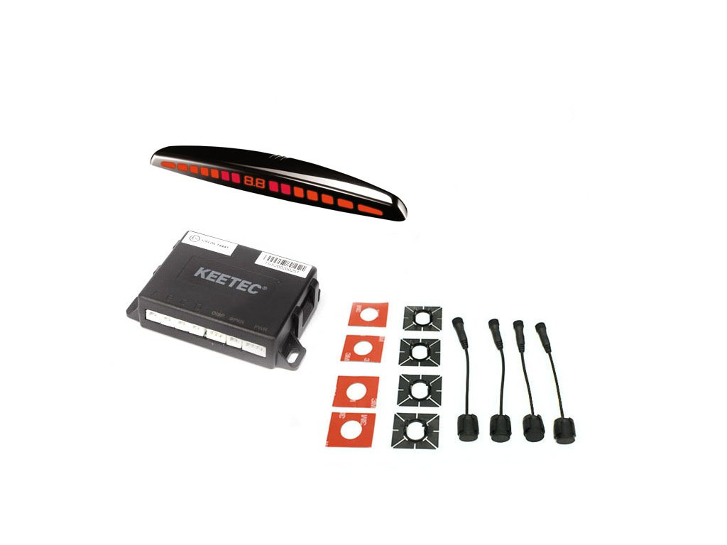 Parkovací asistent Keetec so 4 zápustnými snímačmi 16mm a LED displejom, určený pre inštaláciu do zadného alebo predného nárazníka vozidla. Systém je doplnený o funkciu Antihook a automatickú identifikáciu vadného senzoru, nastavenie citlivosti, učiacu funkciu. Napájacie napätie 12V/24V.